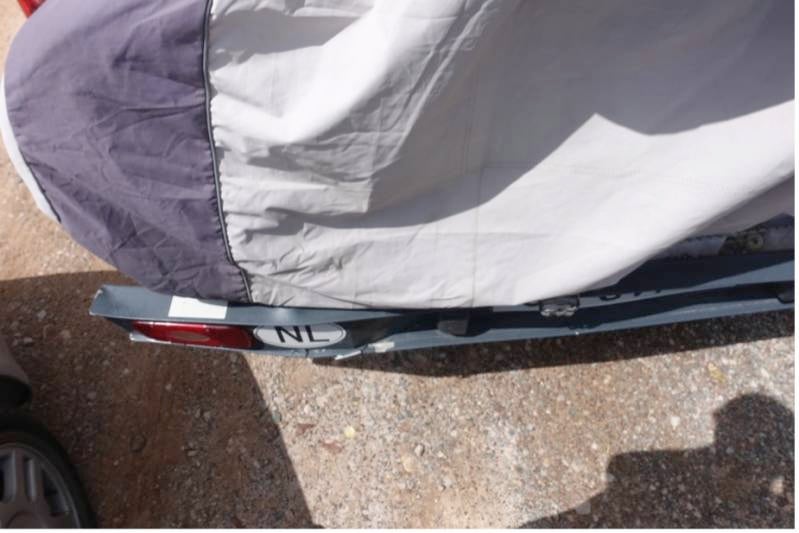 Tijdens het vervolg van de route naar Ouzoud hebben we in elk dorp gekeken of we de auto zagen, echter zonder resultaat. We hadden uitgebreid foto’s van het gebeuren gemaakt, inclusief het kenteken en een portret van dit Marokkaanse portret. Onze schade beperkt zich gelukkig tot een verbogen lichtbalk van de fietsdrager. Die is niet weer recht te buigen omdat het een zogenaamd U-profiel betreft. Gelukkig werkt de verlichting nog volledig.
