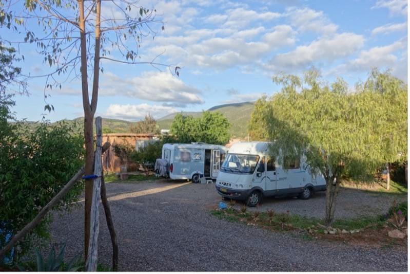 Het verkeer in Marrakech-city was nog niet druk. We konden vrij gemakkelijk de stad weer verlaten. Zowel C&W als wij wilden nog even bij Marjane langsrijden, het lag op de route. Om halftwaalf waren we weer op Camping Les Relais de Marrakech. We hebben een plekje met wat gras uitgezocht. We staan hier weer een paar dagen.