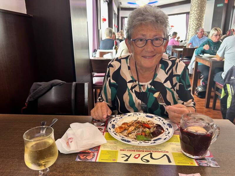 We vonden dat we dit moesten vieren en zijn gaan wokken bij Gran Mundo Wok Buffet. Dit restaurant staat er om bekend dat het er heel erg druk kan zijn. Dat viel nu heel erg mee. We waren er rond halftwee en er waren toen tafeltjes genoeg beschikbaar. We hebben er heerlijk gegeten en kregen na de afrekening een klein flesje wijn mee (voor onderweg…..).