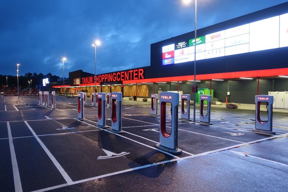 Hier is trouwens ook een laadstation voor de elektrische Tesla’s. Er kunnen 16 auto’s tegelijkertijd worden geladen en er staat regelmatig eentje aan de paal. Wanneer dan het Shoppingcenter nog open is kun je daar even de tijd doden. Maar na negenen is dat gesloten en moet je dus tijdens het opladen gewoon in je auto afwachten tot de accu’s weer vol zijn. ’t Is toch behelpen zo’n batterijauto.