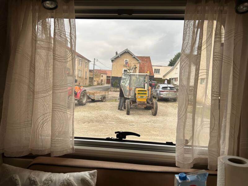 Nadat we later met Alex een kopje koffie hadden gedronken, Rick was al naar de markt, hebben we afscheid genomen en zijn we vertrokken richting Langres. Omdat we afgelopen nacht niet aan de stroom stonden, besloten we onderweg naar Langres om daar toch maar op de cp te blijven staan en stroom aan te prikken. De zonnepanelen produceren in deze tijd van het jaar niet voldoende stroom om de accu op peil te houden.