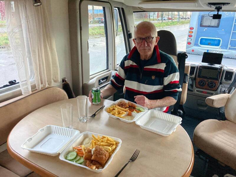 Afgelopen vrijdag in huis alles aan kant gemaakt. Zaterdag 7 december wilden we gaan rijden. En het is dan onze gewoonte om de dag voor het eigenlijke vertrek naar de camperplaats (voortaan cp) van Kardinge te gaan en daar te overnachten. Mochten we nog iets zijn vergeten, dan kunnen we dat alsnog even ophalen. Nadat we diesel hadden getankt reden we langs de viskraam aan de St. Petersburgweg en konden de verleiding niet weerstaan. Het werd voor elk een lekkerbekje met patat en salade.