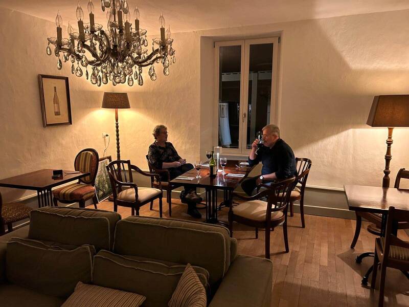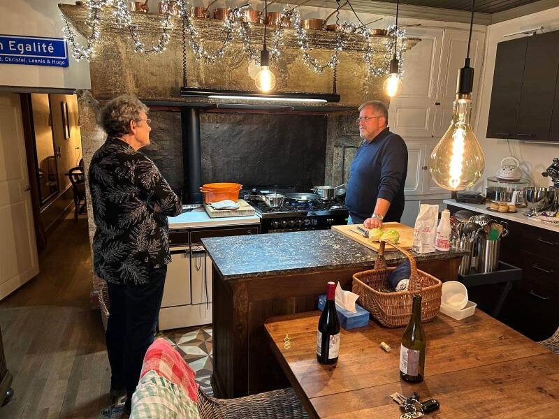 In Melay bevindt zich ‘Maison Egalité’, een Chambres d’ Hôtes opgezet door Alex en Rick. En Alex is een vroegere buurjongen van ons, twee jaar ouder dan onze oudste zoon. Bekendheid kreeg hun bedrijf o.a. door het televisieprogramma ‘Het Roer Om’. We werden hartelijk ontvangen door Alex en zijn echtgenoot Rick, waarna we eerst een uitgebreide rondleiding door het onderkomen kregen. Alles, maar dan ook alles hebben de mannen zelf verbouwd en geregeld tot de huidige chambres d’ hôtes, met een gemêleerde en smaakvolle inrichting. Daarna was het tijd om onder het genot van een glas wijn oude herinneringen op te halen.