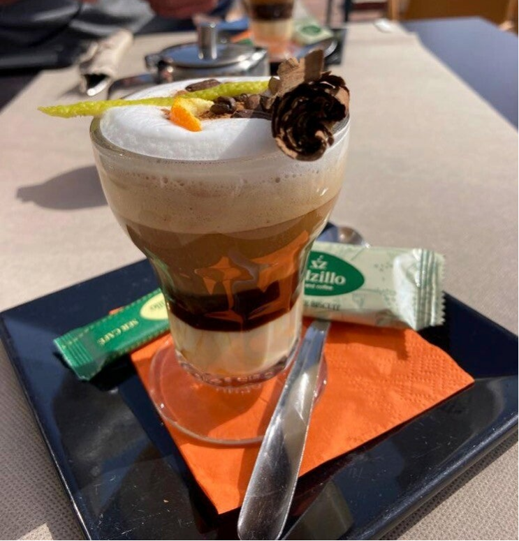 Na een uurtje hadden we het wel gezien en zijn we naar Viggos gefietst en hebben daar op het terras elk een Café Asiático besteld. Dit is een eeuwenoude drank uit het Cartagena van het begin van de twintigste eeuw. Het is oorspronkelijk koffie met gecondenseerde melk en cognac. In de tegenwoordige uitvoering komen daar Licor43, kaneel, een schijfje citroen en twee koffiebonen bij. Wij kregen er een klein kannetje met likeur bij. Al met al: heel goed in te nemen.