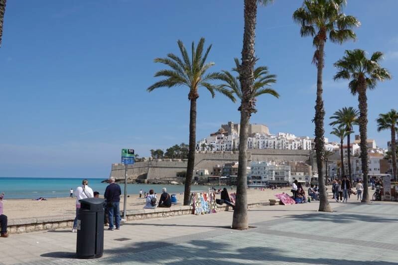 Om een uur of drie waren we in Peñiscóla en zijn naar Parking La Brisa gereden. We wisten eigenlijk niet wat we konden verwachten. Vanwege Pasen een volle cp of niet. Er was gelukkig plaats genoeg, maar veel van de plekken werden bezet door personenauto’s die later op de dag allemaal weer vertrokken. Maar de cp heeft plaats voor 132 campers en staat nu helemaal vol.