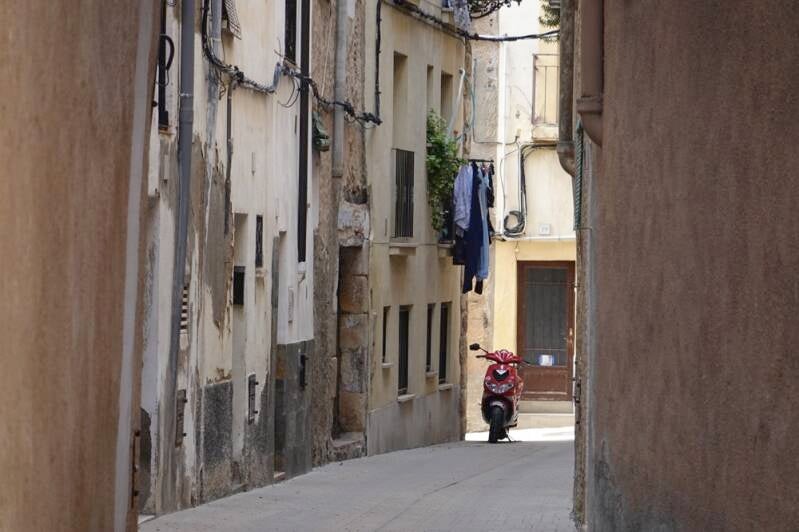 We hadden een cp uitgezocht in Reus. Daar aangekomen voelde het niet goed. Middenin de stad op een parkeerplaats. Dus zijn we weer vertrokken, waarbij de nylon wielen hun diensten weer hebben bewezen. We zijn uiteindelijk beland in het dorp La Selva Del Camp. Een cp met een slagboom, waarvoor je de plaatselijke politie moet bellen om de code voor die slagboom te verkrijgen. In ons geval kwam er een agente in de dienstauto, die ook gelijk kwam afrekenen: €5.-. Een keurige cp inclusief stroom en verzorging.