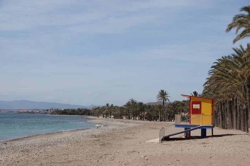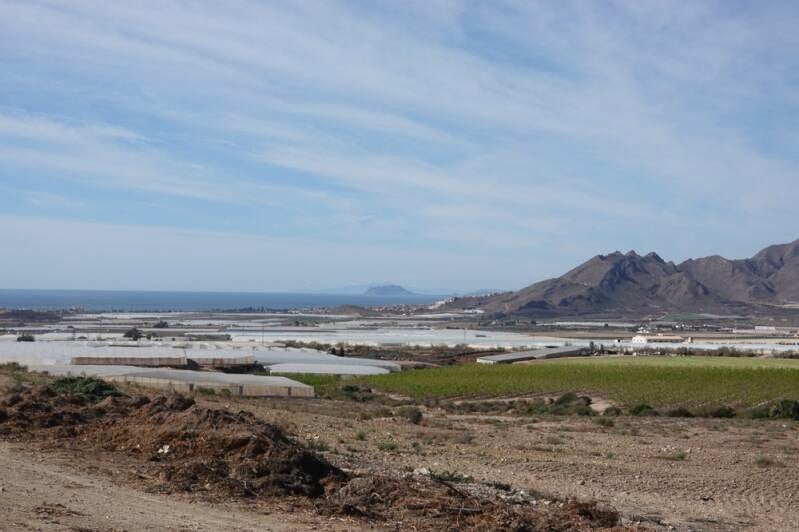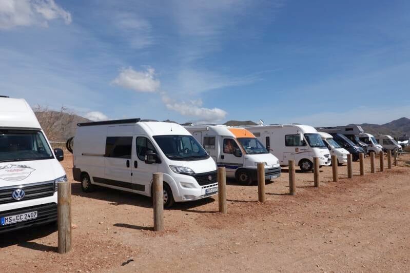 Even voorbij camping Los Madrilles dat weer net even verder ligt dan Isla Plana, kun je via een pad van keien naar de kust fietsen. En eenmaal bij de kust fiets je dan uiteindelijk via de boulevard naar La Azohia. Waar het keienpad bij de kust eindigt bevindt zich een cp. De meeste campers hadden direct zicht op zee, maar er had zich ook al een tweede rij gevormd.