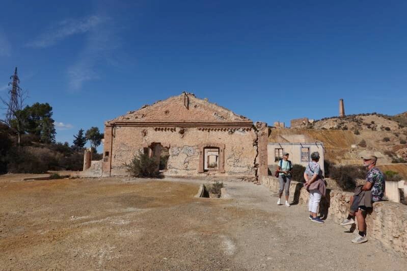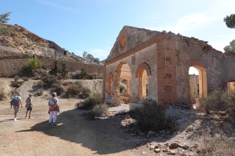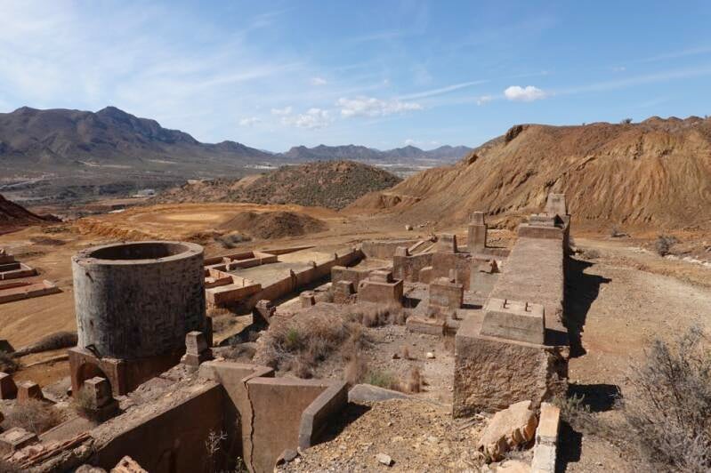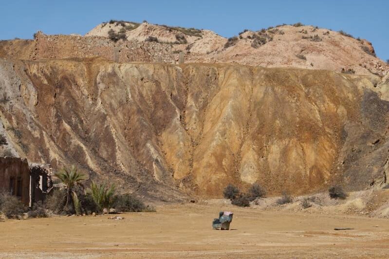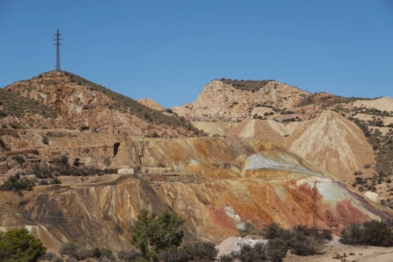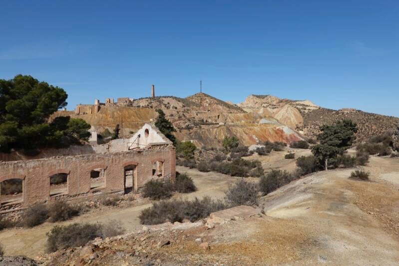 Gisteren, dinsdag, zijn we met z’n vieren op de fiets gestapt want even voorbij Mazarrón ligt een oude verlaten mijn. Mazarrón is een voormalige mijnstad. In de gloriedagen werden zink, lood, aluin, zilver en mineralen gewonnen. Veel daarvan werd geëxporteerd. De ligging van de mijnen vlakbij de kust was gunstig. Veel werd dan ook over zee vervoerd. De mijnen liggen er al jaren verlaten bij en het gebied is vrij toegankelijk, maar wel geheel voor eigen risico. De bergen zijn bedekt met gele en rode tonen. Deze kleuren zijn ontstaan door oxidatie van mijnafval en is een fascinerend kleurrijk gezicht. Vanwege de verslechterende werkomstandigheden en dalende metaalprijzen, is de winning van ijzer aan het begin van de twintigste eeuw gestopt. De aluinmijn is gesloten in 1953 en de mijnactiviteiten in de lood-zinkafzettingen stopten in 1969.