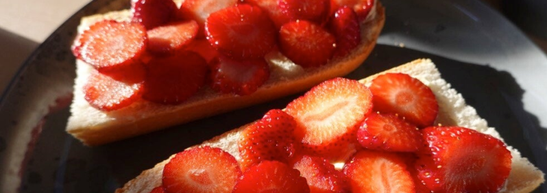 elke ochtend: stokbroodje met aardbeien; kon minder.....